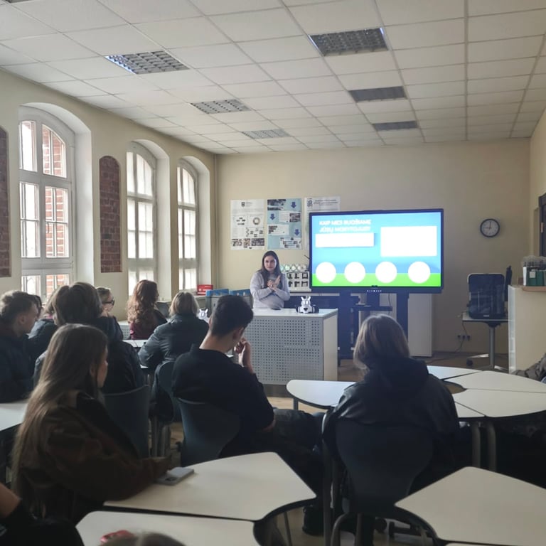 Nors paskaitos truko tiek pat, kiek įprasta pamoka – 45 minutes, jos paliko stiprų įspūdį. Mokiniai aktyviai įsitraukė: drąsiai diskutavo, atsakinėjo į klausimus, dalijosi savo mintimis. Didžiausio susidomėjimo sulaukė paskaita apie verslumą – ypač įkvėpė jaunų žmonių patirtys, kaip verslą galima pradėti dar mokyklos suole.